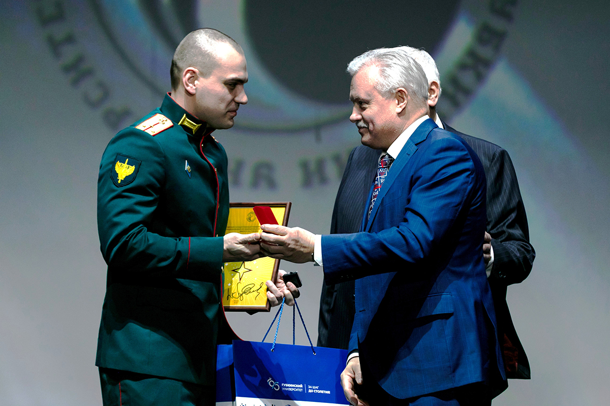 Особым моментом стало присвоение звания «Почётный выпускник Губкинского университета» выпускнику факультета химической технологии и экологии, участнику специальной военной операции Сергею Данилину. Председатель Правления Фонда выпускников-губкинцев Игорь Кацал вручил Сергею Данилину Знак «Почетный выпускник Губкинского университета».