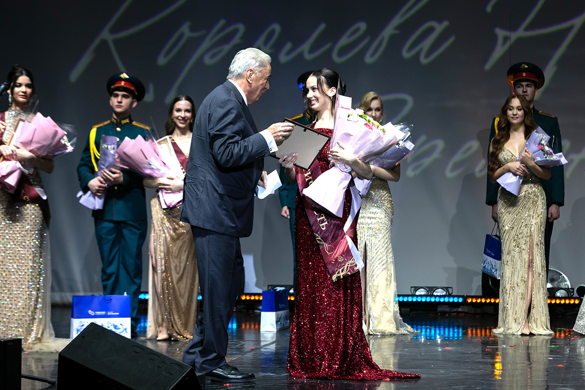Специальный приз студентке факультета инженерной механики Виктории Малышевой «Мисс Романтичность» от Фонда выпускников-губкинцев вручил Председатель Попечительского совета Николай Каплун. Она же стала обладательницей титула «Королева нефть 2026».